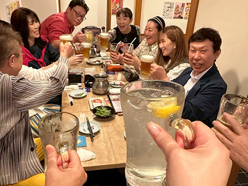飲み会中も今話題のスピーカーを体験したり、新しいエナジープロダクツの質問をしたりと、宇宙基地メンバーだからこその話題で大盛り上がり!!